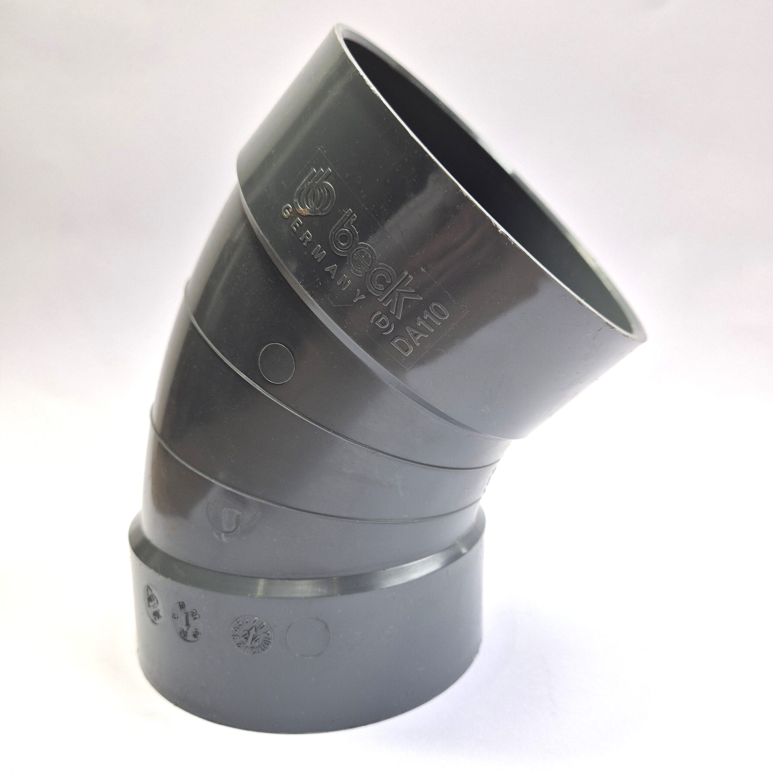 PVC industrial ventilation 45 bend, lightweight, colour dark grey