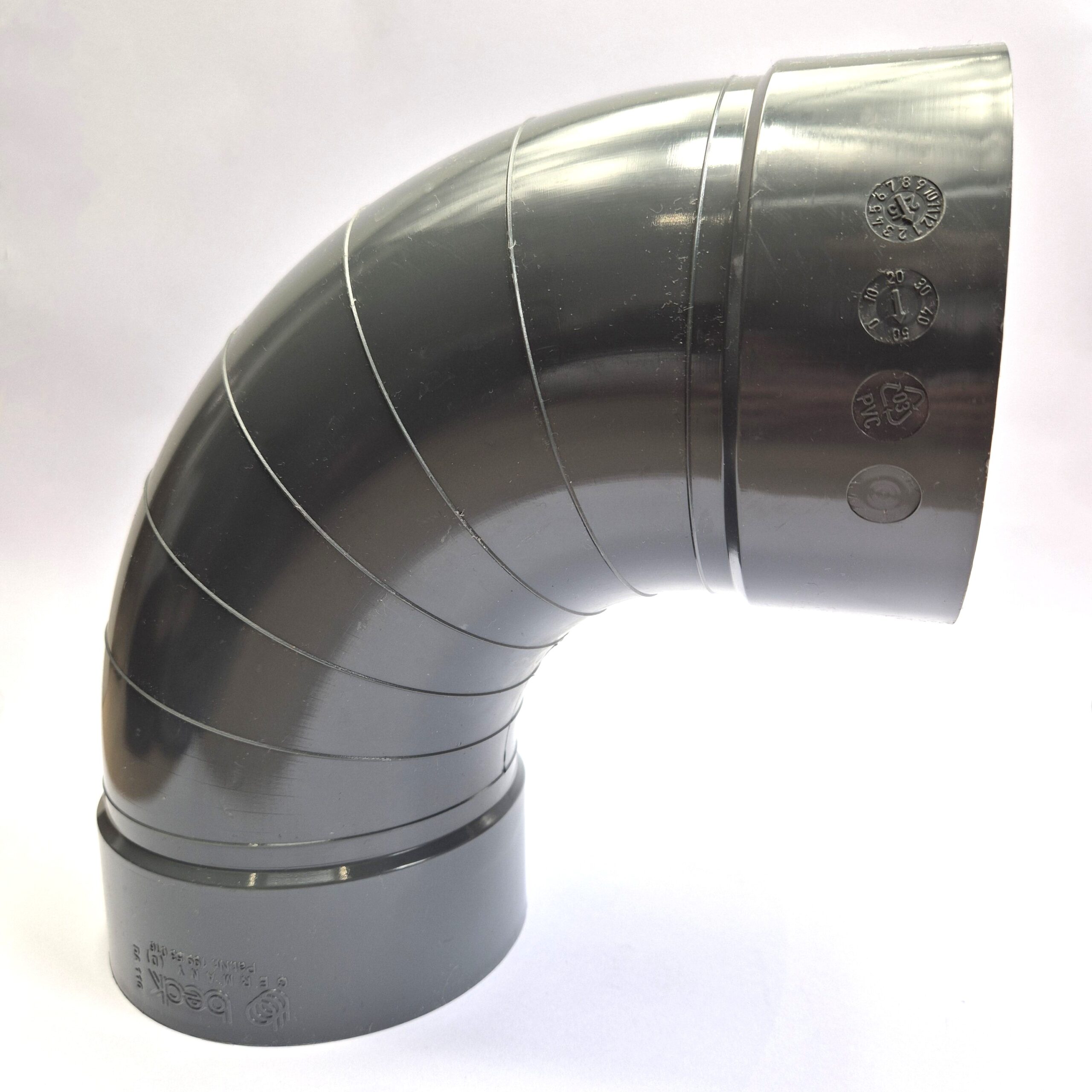 PVC industrial ventilation 90 bend, lightweight, colour dark grey